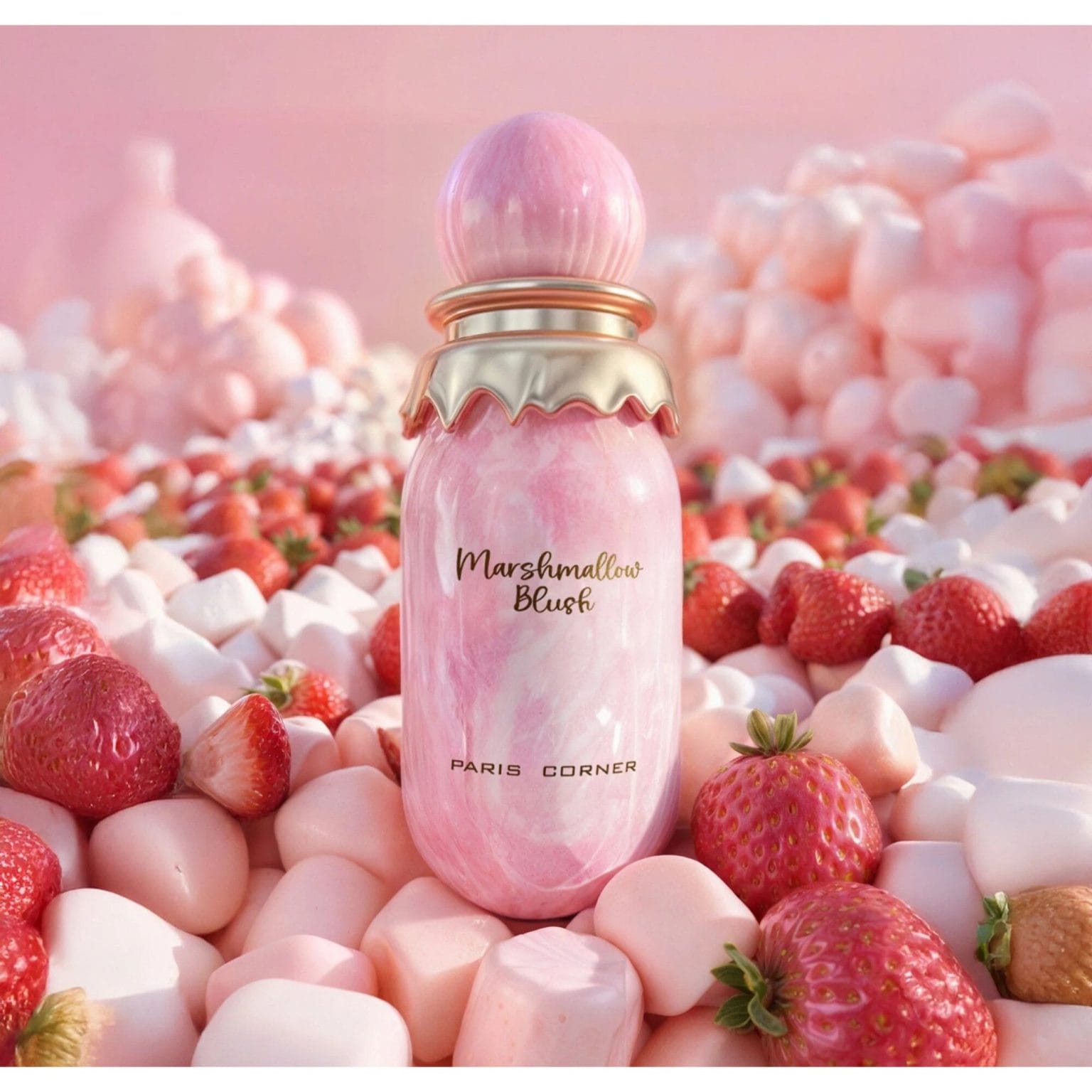 Paris Corner Marshmallow Blush е унисекс аромат от 2025 г., вдъхновен от сладкия уют на маршмелоу и ягодов шейк. Идеален за млади и игриви настроения, парфюмът се отличава с ярка плодово-млечна мекота, съчетана с нежно сладък блатов оттенък.